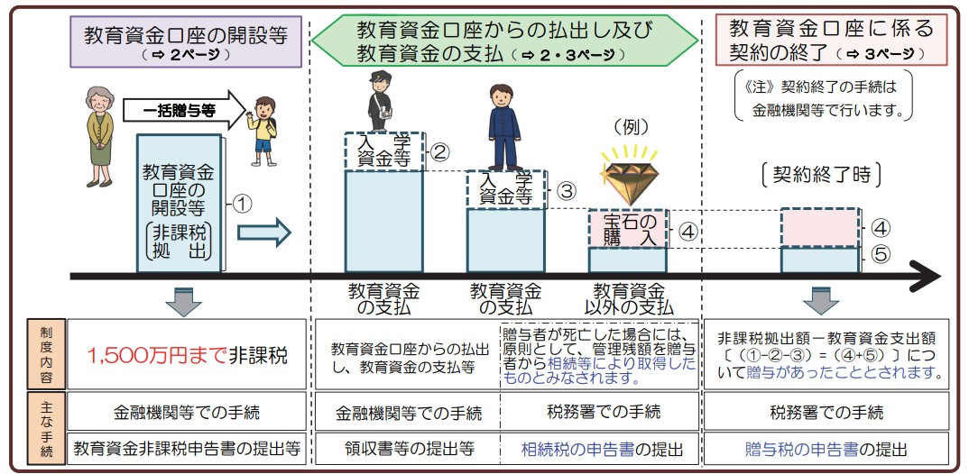 ※国税庁HP「祖父母などから教育資金の一括贈与を受けた場合の贈与税の非課税制度のあらまし」より引用