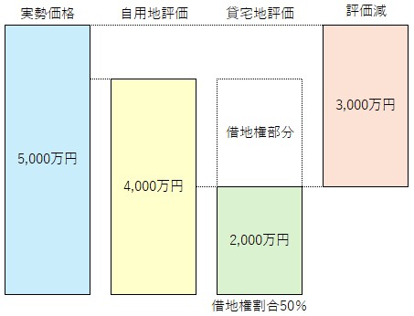 この権利が発生することにより、貸主である所有者は所有している不動産の使用が制限されるため、評価額が下がります。